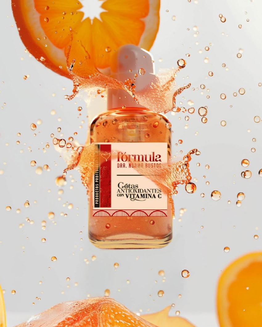 - Vitamina C concentrada: antioxidante por excelencia que combate la acción de los radicales libres, estimula el rejuvenecimiento cutáneo y actúa como elemento fundamental en la síntesis de colágeno. Contribuye al crecimiento, mantenimiento y reparación del tejido conectivo y ayuda a neutralizar el estrés oxidativo posterior a la exposición solar, previniendo el fotodaño.
